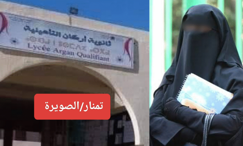 عرفت الثانوية التأهيلية أركان بمركز تمنار بإقليم الصويرة حالة دراسية خاصة بطلتها تلميذة قاصر تنحدر من جماعة اداوكلول التابعة لنفوذ قيادة اداوتغمة ، و التي تصر على رفض التحاقها لاعادة السنة بنفس المستوى و متابعة الدراسة تحت سقف ضرورة ولوج المؤسسة التعليمية بالوجه المكشوف و تشترط إرتداء النقاب، و امام هذه الوضعية قامت مديرية وزارة التربية الوطنية و التعليم الاولي و الرياضة بالصويرة بمتابعة هذا الملف و الإنتقال الى منزل اسرة التلميذة ، قبل ان تصدر بلاغ يتوفر الموقع على نسخة منه: