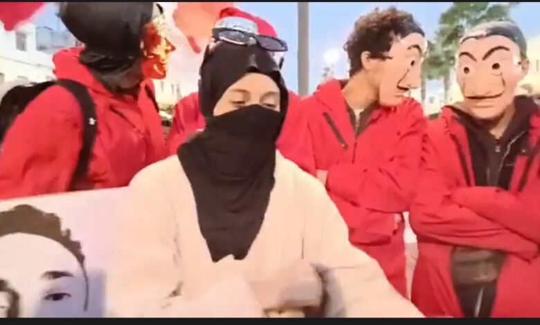 ورفع المتظاهرون الذين تقمصوا شخصيات « لا كاصا دو بابل » خلال المظاهرات التي عرفتها مدينة الدار البيضاء، شعارات العدالة والحرية لكافة معتقلي الحركة.