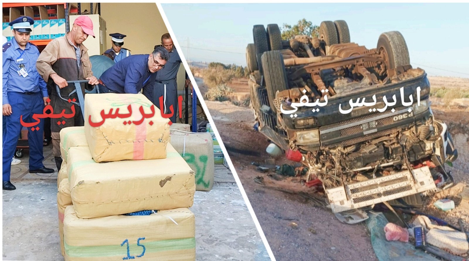 ابابريس : الصويرة متابعة: عبدالكريم حجلي شهدت الطريق المؤدية لمنطقة الهراولة بالقرب من دوار أبارو جماعة أوناغة إقليم الصويرة صباح أمس الخميس حادثة انقلاب شاحنة. (الصورة) و تقول مصادر مطلعة، ان الشاحنة كانت محملة بـحوالي 242 رزمة مخدر “الشيرا” وهي في طريقها إلى وجهة مجهولة قبل أن تنقلب بإحدى المنعرجات ويلوذ من كان على متنها بالفرار . وفور وقوع الحادث …