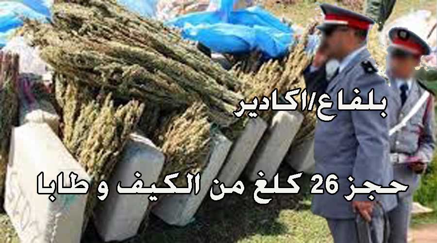 أكمل القراءة »درك بلفاع يحجز 26 كلغ من الكيف و طابا و البحث جاري على الجهات التي لها علاقة بالموضوع