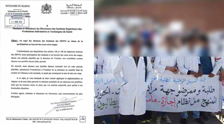 ابابريس :قسم الاخبار هددت وزارة الصحة والحماية الاجتماعية طلبة معاهد مهن التمريض التابعة لها، بمنح الطلبة الممرضين الذين انضموا إلى الإضراب الذي دعت إليه النقابة المستقلة للمرضين بمنحهم نقطة صفر على عشرين في حال مقاطعتهم الامتحانات أو الدورات التدريبية، وذلك استنادا للفصلين 106 و108 من القانون الداخلي المنظم لمعاهد مهن التمريض. وكشفت وثيقة صادرة عن مدير الموارد البشرية بالوزارة وجهها …